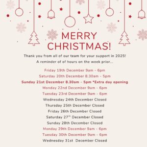 We will be a few extra hours this year to get you all prepped for your festivities.